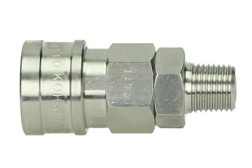 - rýchlospojky jednostranne uzatváracie, štandardne s ventilom zabudovaným do zásuvky, ventil sa otvára vložením zástrčky, zástrčka nemá ventil;