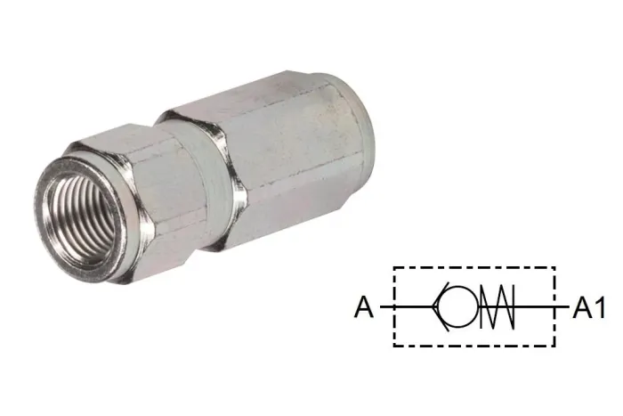 Spätný ventil typu R-4000 navrhnutý a vyrobený v súlade so smernicou PED 2014/68/EÚ. Určený pre vysokotlakové hydraulické a priemyselné inštalácie. Uzatvára prietok média v jednom smere a otvára voľný prietok média v opačnom smere. Štandardný otvárací tlak: 0,5 bar (dostupné aj 1, 2, 3 a 5 bar). Povolený smer prietoku: A → A1. Materiál: pozinkovaná oceľ, niklovaná mosadz, nerezová oceľ AISI 316L. Tesnenie: NBR – štandard RA, RL; viton (FKM) – štandard RZ; EPDM – možnosť. Pracovná teplota: od -20°C do +100°C (NBR); od -20°C do +200°C (viton); od -40°C do +150°C (EPDM).