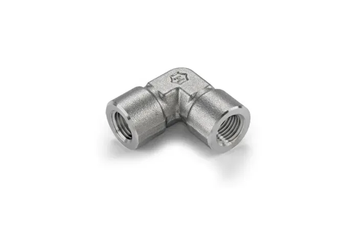 Koleno 90° s vnútorným závitom NPT, typ 100H, určené hlavne pre chemický, petrochemický, farmaceutický priemysel, energetiku, jadrové elektrárne a procesné inžinierstvo. Materiál: oceľ AISI 316.