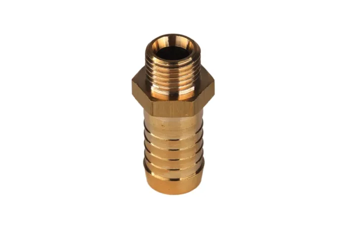 Koncovka na hadicu s vonkajším závitom BSP na použitie v priemyselných inštaláciách, napr. na vzduch. Materiál: mosadz. Pracovný tlak: do 12 bar. Pracovná teplota: od -20°C do +100°C.
