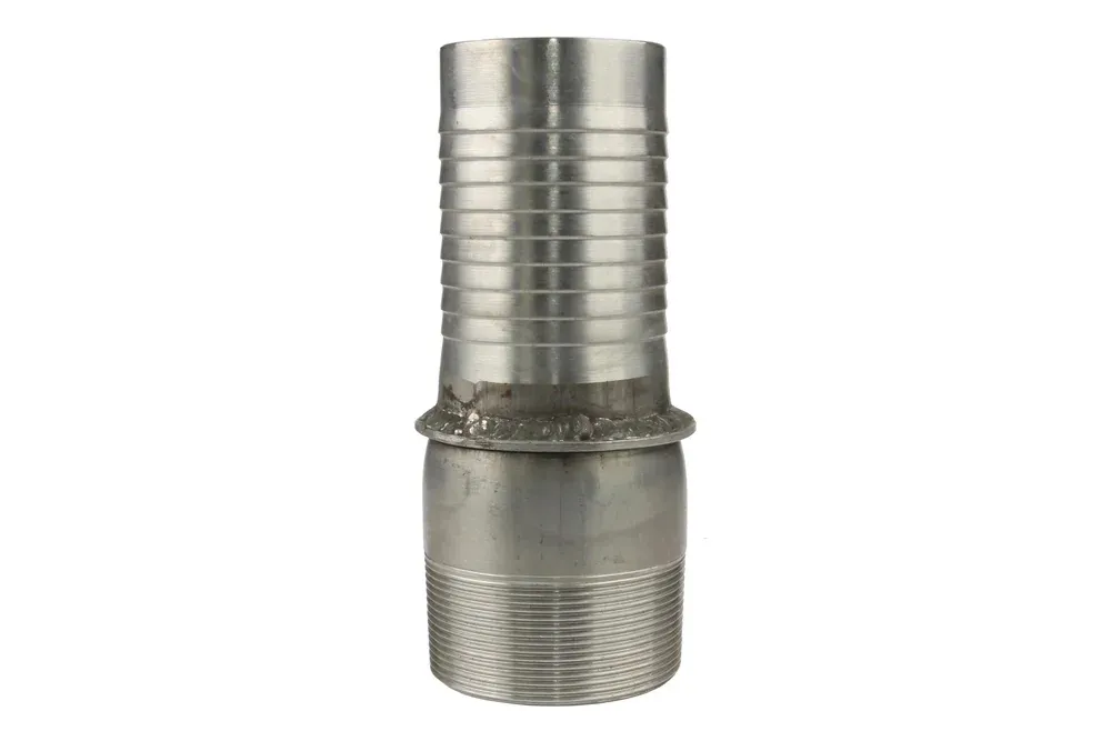 Koncovka typ CNPH HEAVY DUTY zakončená vonkajším kužeľovým závitom BSPT z ocele AISI 304 s „chvostom“ pre hadicu so zvýšenou odolnosťou. Určená pre gumové a plastové priemyselné hadice. Montáž pomocou špeciálnych plechových upínacích puzdier typu CNFH. Materiál: oceľ AISI 304.