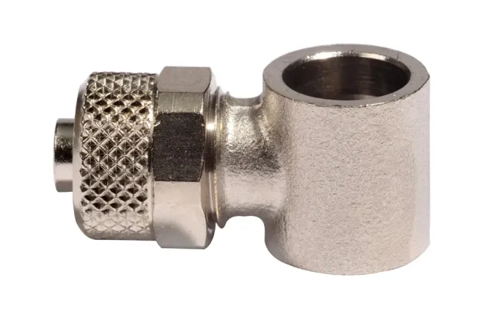 Korpus uhlového spojenia BANJO so spojkou typu D5, určený pre hadice z mäkkých plastov. Spojenie sa uskutočňuje nasadením hadice na koncovku a utiahnutím pomocou matice. Korpus uhlového spojenia BANJO umožňuje nastavenie spojenia do požadovanej polohy. Priechodné skrutky pre korpus: D7, D8, D9, D10. Materiál: poniklovaná mosadz. Prevádzkový tlak: 18 barov.