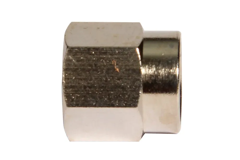 Matica pre skrutkovacie spojky s rezacím krúžkom série B. Materiál: poniklovaná mosadz.