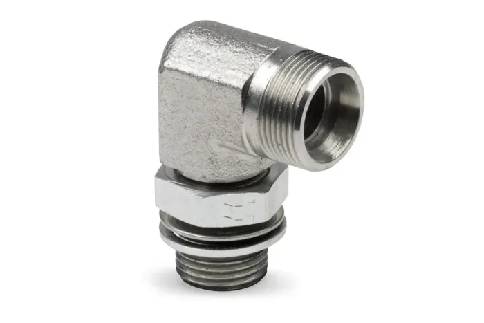 Nastaviteľná uhlová skrutková prípojka DIN 2353, typ WE-BG: sedlo 24° DIN 2353 s vonkajším metrickým závitom a s vonkajším BSP závitom (tesnenie ISO-1179 typ G – o-krúžkom s upevňovacím krúžkom). Bezpečnostný faktor 4:1. Dostupné ako: L (ľahká séria), S (ťažká séria). Materiál: nerezová oceľ.