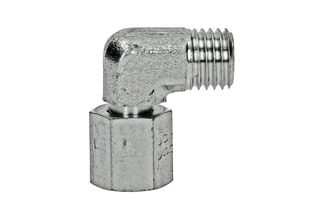 Nastaviteľná uhlová spojka DIN 2353, typ EVWO: sedlo 24° DIN 2353 s vonkajším závitom a s vnútorným metrickým závitom s o-krúžkom. Dostupná ako: L (ľahká séria), S (ťažká séria). Materiál: uhlíková oceľ, pozinkovaná.