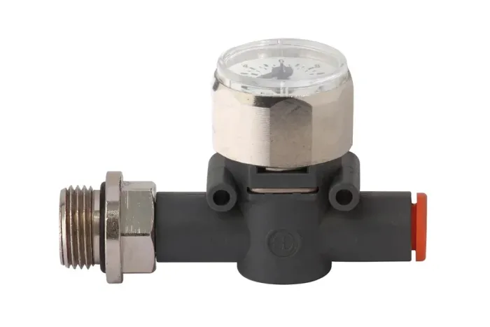 Spojka s manometrom MAN L vo verzii s pripojením so závitom s o-krúžkom na jednej strane a rýchlospojkou na druhej strane (závit – hadica). Manometer zabudovaný v kovovom kryte zabezpečuje presný odpočet napriek malým rozmerom. Môže byť nasmerovaný v ľubovoľnom smere prostredníctvom ručného otočenia. Pracovný tlak: 12 bar. Pracovná teplota: od -20°C do +60°C. Médium: filtrovaný stlačený vzduch, olejovaný alebo neolejovaný.