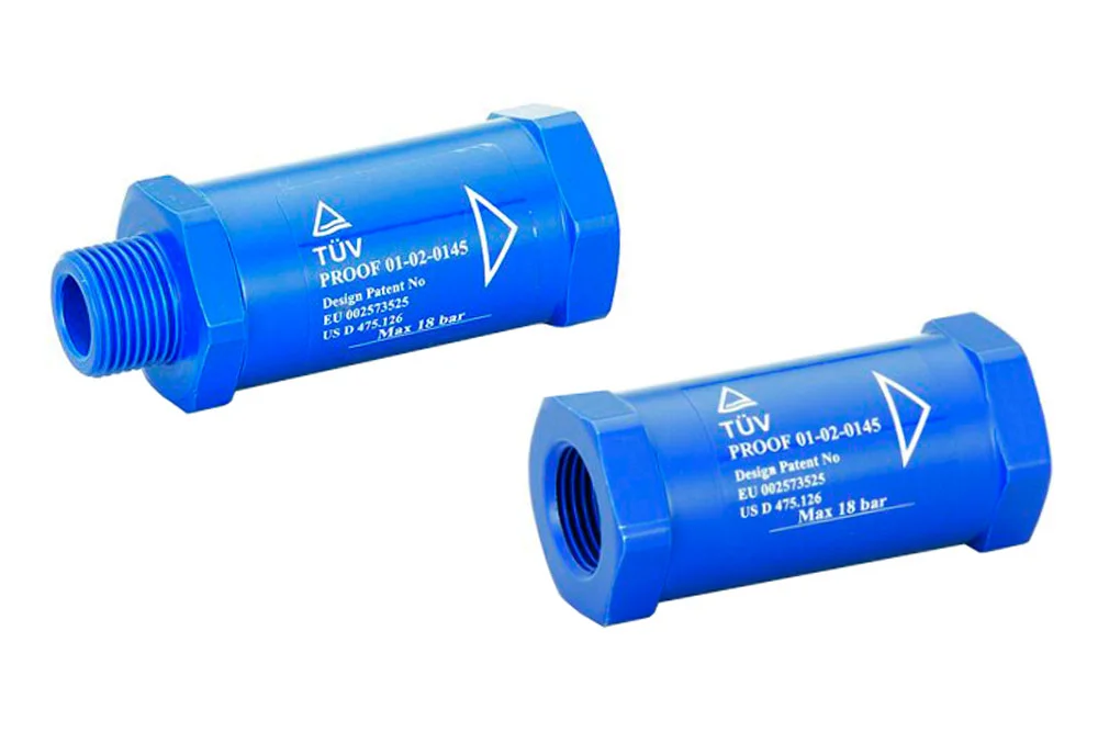 Účinný uzatvárací ventil kompatibilný so všetkými pneumatickými inštaláciami so štandardnou spotrebou stlačeného vzduchu, ktorého úlohou je ochrana operátora a pneumatickej inštalácie v prípade jej poškodenia (napr. prasknutie potrubia alebo roztrhnutie hadice). Spĺňa požiadavky: EN 983 § 5.3.4.3.2, EN 4414 §5.4.5.11.1, ATEX Skupina II Kategória II, TÜV 01-02-0145, TÜV AZ 77318 2. Ventil je potrebné vyberať s ohľadom na: hodnotu prietoku, dĺžku a priemer hadice, ako aj vnútorné priemery prvkov inštalácie. V prípade otázok alebo pochybností nás prosím kontaktujte na Tubes International. Pripojenie: GZ BSP alebo GW BSP (vstup) / GW BSP (výstup). Materiál telesa: hliník. Materiál piestu: POM (1/4″ ÷ 1/2″), hliník (3/4″). Materiál pružiny: nerezová oceľ. Tesnenie: NBR. Minimálny tlak: 4 bar. Pracovný tlak: 18 bar. Pracovná teplota: od -20°C do +80°C.