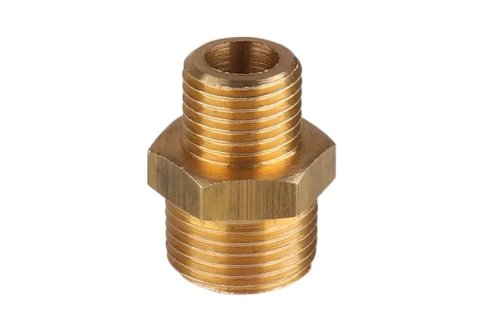 Redukčný nypel s obojstranným vonkajším závitom BSP na použitie v potrubných spojeniach, napr. inštalácie teplej a studenej vody. Materiál: mosadz. Pracovná teplota: od -10°C do +100°C. Pracovný tlak: 10 bar.