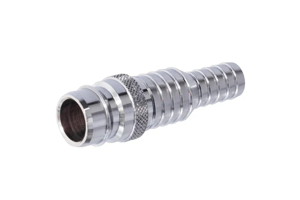 Vysokokvalitná rýchlospojka na vodu NiTO 3/4″ s dvojitou koncovkou na hadicu, umožňujúcou montáž hadíc s dvoma priemermi. Materiál: chrómovaná mosadz. Pracovný tlak: do 25 bar. Pracovná teplota: do +80°C.