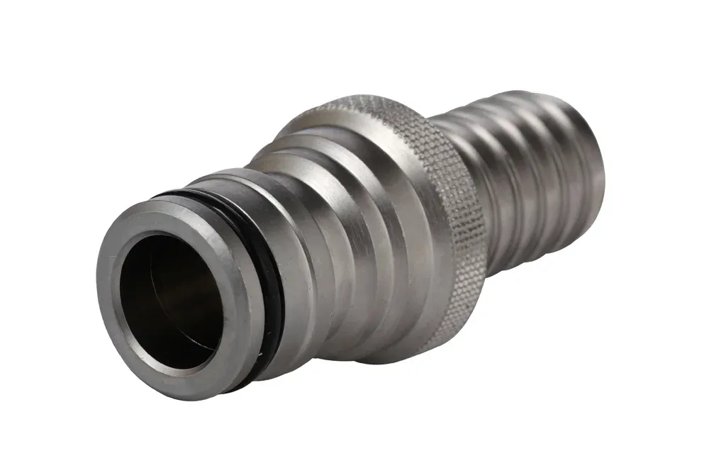 Rýchlospojka na vodu NiTO CLICK 3/4″ s koncovkou na hadicu. Rýchlospojky NiTO CLICK sú rýchlospojky na vodu vyrobené podľa profilu veľmi populárnych plastových záhradných rýchlospojok a sú s nimi kompatibilné. Tesnenie pomocou o-krúžku umiestneného zvonka na zástrčke. Vyrobené v Dánsku – 5 rokov záruka. Zachovávajú jednoduchosť všeobecne známych plastových rýchlospojok a vyznačujú sa odolnosťou a trvanlivosťou. Určené na vodu, vodu s čistiacimi prostriedkami na použitie v priemysle, službách, záhradníctve, poľnohospodárstve atď. Materiál: chrómovaná mosadz (mat – satén). Pracovný tlak: do 25 bar. Pracovná teplota: od -30°C do +80°C. Tesnenie: NBR (nie je vhodné pre benzíny a oleje).