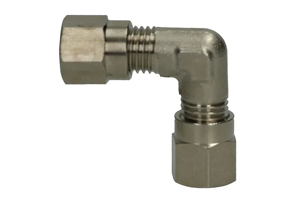 90° koleno typ B6 s rezacím krúžkom určené na spojenie medených rúr a plastových hadíc. Pri spojení s hadicami sa odporúča použiť vystužovacie puzdrá (B12). Materiál: poniklovaná mosadz. Prevádzkový tlak: 60 barov.