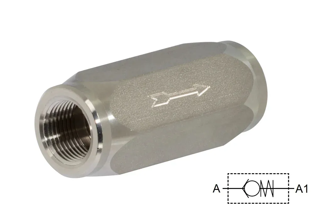 Spätný ventil na uzatváranie prietoku hydraulickej kvapaliny, nerezová oceľ, typ FPR
