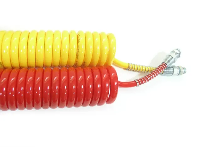 Veľmi pružná, odolná voči oderu, praskaniu a zalamovaniu špirálová hadica určená pre inštalácie pneumatických automobilových brzdových systémov. Odolná voči oleju, benzínu, ozónu a UV žiareniu. Zachováva vysokú pružnosť pri nízkych teplotách. Ukončená obojstranne koncovkami s vonkajším metrickým závitom. Uvedená celková dĺžka je maximálna dĺžka hadice po natiahnutí. Dostupná v žltej a červenej farbe. Materiál hadice: polyuretán. Materiál pružiny: galvanizovaná oceľ. Povolený pracovný tlak: 10 bar. Pracovná teplota: od -40°C do +70°C.