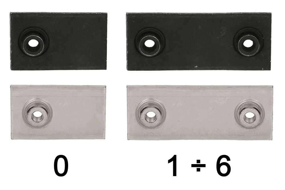 Krátka spodná doska na privarenie pre montáž objímky DIN 3015 štandard kompletnej typ 100/101. Pre rozmerovú skupinu 0 sa vyskytuje jeden otvor pre skrutku. Pre rozmerovú skupinu 1 ÷ 6 sa vyskytujú dva otvory pre skrutku. Materiál: uhlíková oceľ alebo oceľ AISI 316L.