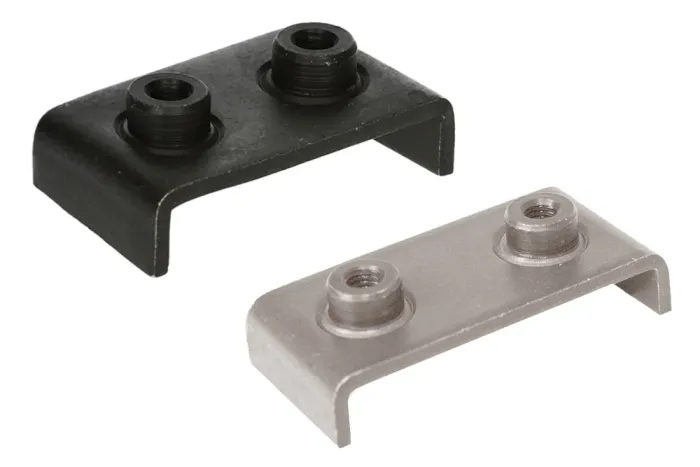 Spodná mostíková doska na privarenie na montáž objímky DIN 3015 štandard typ 100/101. Materiál: uhlíková oceľ alebo oceľ AISI 316L.