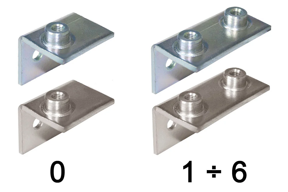 Spodná uhlová doska na priskrutkovanie pre montáž objímky DIN 3015 štandard typ 100/101. Pre rozmerovú skupinu 0 sa vyskytuje jeden otvor pre skrutku. Pre rozmerovú skupinu 1 ÷ 6 sa vyskytujú dva otvory pre skrutku. Materiál: uhlíková oceľ, pozinkovaná alebo oceľ AISI 316L.