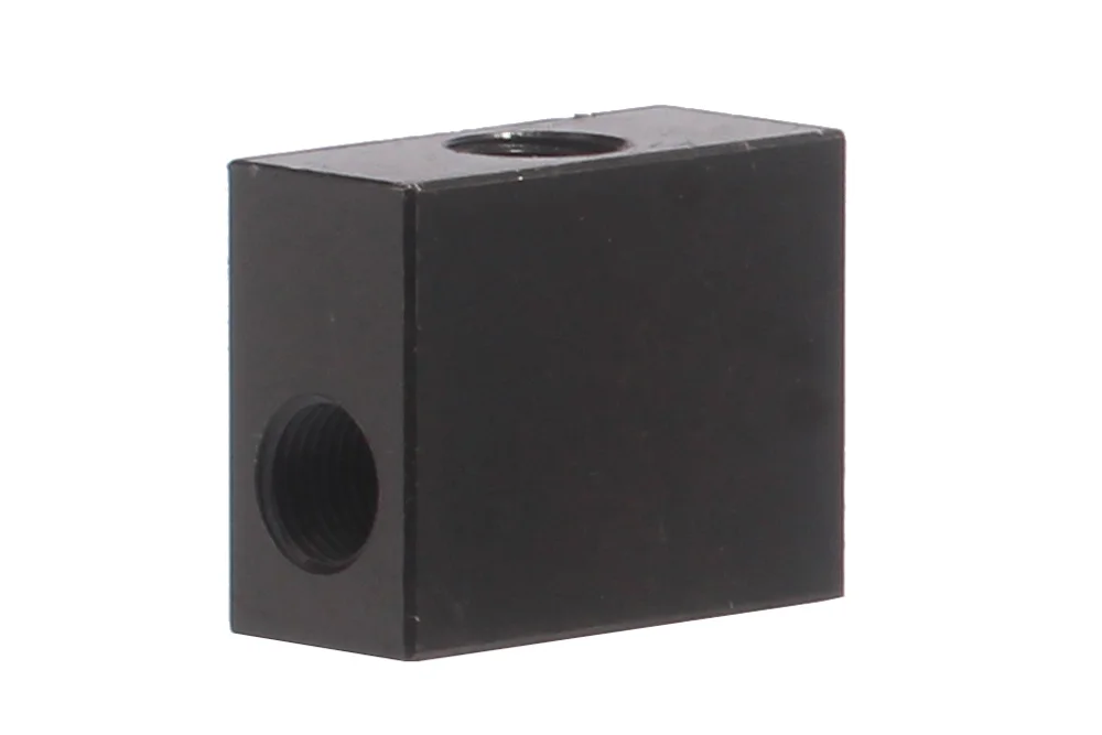 T-kus typu kocka s vnútorným závitom umožňujúci spojenie rýchlospojok a hadíc UHP medzi sebou. Pracovný tlak: od 2000 bar do 3000 bar (v závislosti od veľkosti závitu). Materiál: uhlíková oceľ, čierne pozinkovaná.