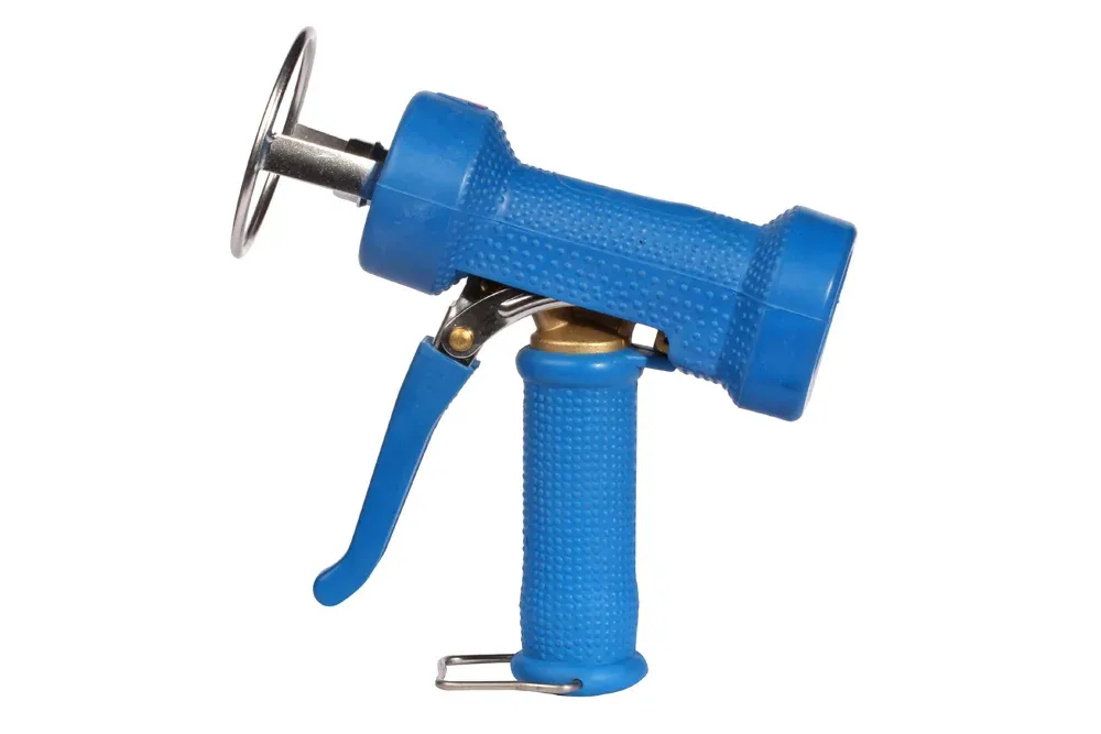 Viacúčelová pištoľ s rýchlospojkou na výstupe, s oblúkom, mosadz, modrá, AKBO