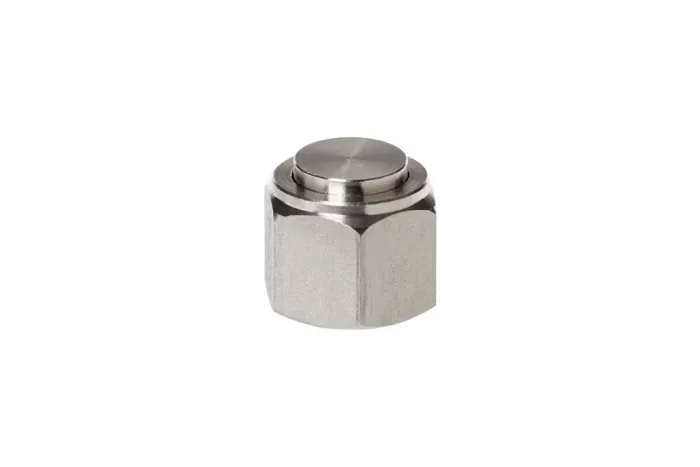 Zátka (korek) ORFS s vnútorným závitom UNF (tesnenie na čelnej ploche), typ VKA. Materiál: oceľ AISI 316.