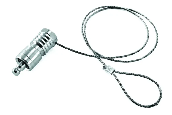 Uzáver pre zásuvku rýchlospojky QC4 a QC6 v súlade s normou Standard Instrumentation, s lankom. Uzáver nie je navrhnutý na prenášanie tlaku. Chráni zástrčky a zásuvky pred znečistením a poškodením, keď je rýchlospojka odpojená. Veľkosť: 1/4″, 3/8″. Materiál: oceľ AISI 316. Pracovná teplota: od -26°C do +204°C.