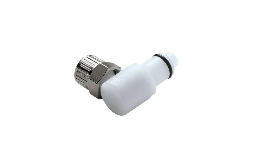 CC-PLV-41-ACZástrčka 90° PLC DN6,4 pre hadicu 9,5x6,4 s maticou, s ventilom, acetal--Na sklade 0