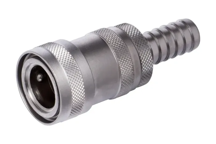 Zásuvka rýchlospojky na vodu NiTO CLICK 1/2″ s koncovkou na hadicu a uzatváracím ventilom. Rýchlospojky NiTO CLICK sú rýchlospojky na vodu vyrobené podľa profilu veľmi populárnych plastových záhradných rýchlospojok a sú s nimi kompatibilné. Tesnenie pomocou o-krúžku umiestneného zvonka na zástrčke. Vyrobené v Dánsku – 5 rokov záruka. Zachovávajú jednoduchosť všeobecne známych plastových rýchlospojok a vyznačujú sa odolnosťou a trvanlivosťou. Určené na vodu, vodu s čistiacimi prostriedkami na použitie v priemysle, službách, záhradníctve, poľnohospodárstve atď. Materiál: chrómovaná mosadz (mat – satén). Pracovný tlak: do 25 bar. Pracovná teplota: od -30°C do +80°C. Tesnenie: NBR (nie je vhodné na benzíny a oleje). Tesnenie ventilu: o-krúžok z EPDM.