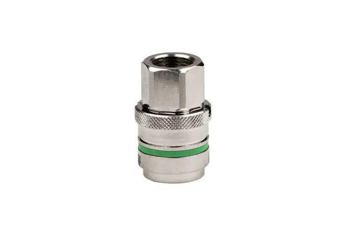 Zásuvka rýchlospojky CEJN NON DRIP (bezúniková) s ventilom, určená na prenos kvapalín (voda, olej, chemikálie atď.). Ploché styčné plochy minimalizujú možný únik kvapalín a zabraňujú inklúzii vzduchu, pričom zároveň umožňujú jednoduché udržiavanie rýchlospojky v čistote. Zásuvky a zástrčky vo verziách s uzatváracím ventilom alebo bez, s možnosťou ich striedavého spájania, umožňujú dosiahnuť tri konfigurácie rýchlospojky: s voľným prietokom, jednostranne uzatváracie (zásuvka musí mať ventil) a obojstranne uzatváracie (bezúnikové). Sú dostupné krytky chrániace rýchlospojku pred znečistením, keď je odpojená. Na zabezpečenie dodatočnej bezpečnosti, keď je neprípustná zámena v spojení zásuvka-zástrčka, je možné kódovanie rýchlospojky farbami: zelenou (štandard) a voliteľne čiernou, modrou, červenou, bielou a žltou alebo tzv. kódovanie kľúčom, kde zásuvka a zástrčka majú dodatočné drážky a výstupky, umožňujúce len správne prispôsobené spojenia rýchlospojky. Materiál: poniklovaná mosadz. Tesnenie: NBR, Viton, EPDM. Pracovný tlak: 20 bar. Pracovná teplota: od -15°C do +205°C, v závislosti od druhu tesnenia.