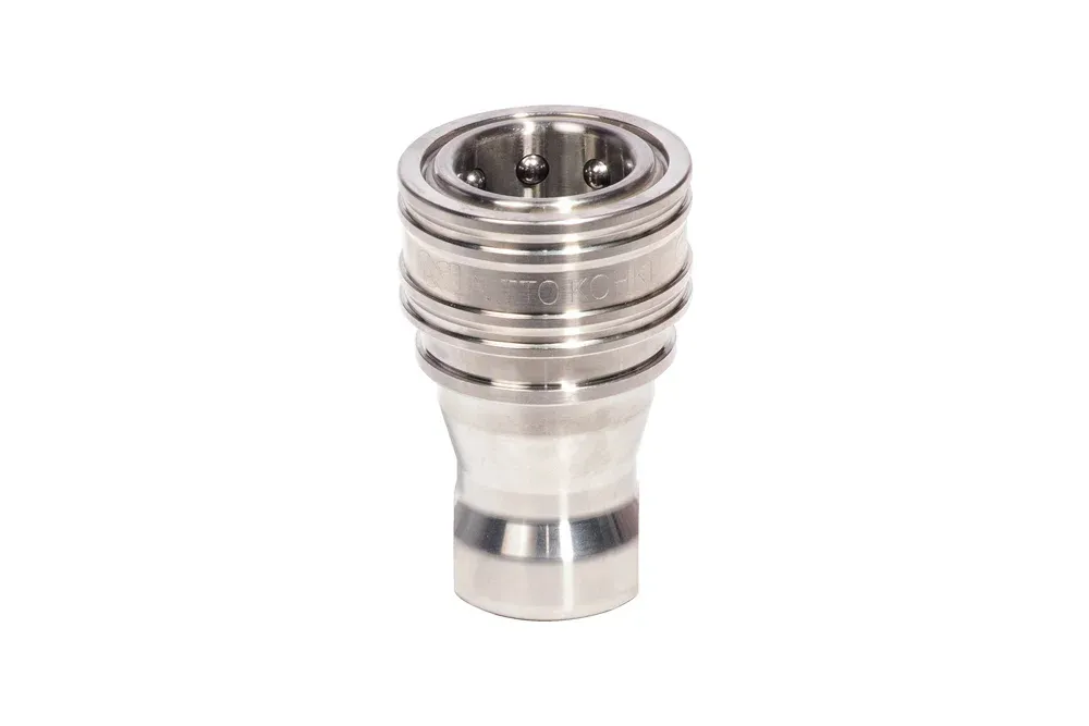 Zásuvka s uzatváracím ventilom Nitto Kohki séria SP CUPLA typ A s vnútorným závitom BSPT s vynikajúcou trvanlivosťou, určená pre vodu, hydraulické oleje, paru, chemikálie, vzduch a plyny. Materiál: oceľ AISI 304. Pracovný tlak: 75 bar (1/8″, 1/4″, 3/8″), 45 bar (1/2″, 3/4″, 1″), 30 bar (1.1/4″, 1.1/2″), 20 bar (2″). Pracovná teplota: od -20°C do +80°C (NBR), od -20°C do +180°C (viton).
