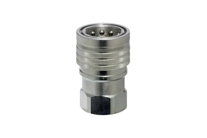 Zásuvka rýchlospojky TEMA s vnútorným závitom BSP, zodpovedajúca norme ISO 7241-1 B. Zásuvka (okrem veľkosti 1/4″) má dodatočný druhý o-krúžok, vďaka čomu je ideálna pre plynové inštalácie. Použitie: hydraulika (hydraulický olej), priemyselné (voda, para, palivá a oleje, plyny, chemikálie). Dostupná je aj verzia s eliminátorom statického tlaku. Zameniteľná s rýchlospojkami ISO-B od iných výrobcov. Pracovný tlak: do 400 bar (v závislosti od veľkosti rýchlospojky). Koeficient bezpečnosti: 4:1. Uvedený pracovný tlak sa týka spojenej rýchlospojky. Materiál: chrómovaná mosadz (pre zásuvky veľkosti 1/4″ ÷ 1/2″), pozinkovaná uhlíková oceľ (pre zásuvky veľkosti 3/4″ a 1″). Tesnenie: NBR (od -30°C do +100°C), viton (od -25°C do +200°C).